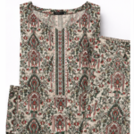 A stylish 3 Pcs Ready to Wear Printed Lawn Suit featuring an elegantly designed shirt, perfectly matched trousers, and a graceful dupatta—crafted to give you a complete and sophisticated look for summer occasions.