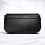 A sleek and sophisticated black shoulder bag featuring a premium textured finish, bold metal clasp detail, and detachable patterned strap. Perfect for everyday elegance or evening styling.
