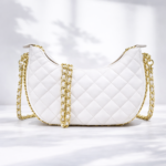 A stunning emerald green quilted shoulder bag featuring elegant gold chain detailing and a timeless curved silhouette. Bold, stylish, and luxurious — perfect for statement fashion and premium everyday wear.