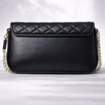 A timeless quilted black handbag with elegant gold detailing and chain strap. Classic luxury design perfect for evening wear and everyday sophistication.