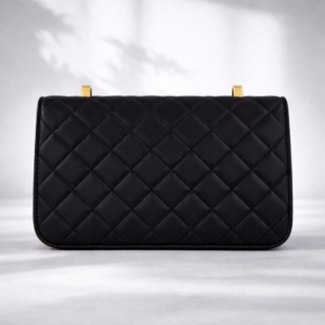 A sophisticated structured hand bag featuring a bold black leather frame with an elegant beige monogram body. Designed for modern luxury lovers, this spacious handbag blends timeless structure with everyday functionality.